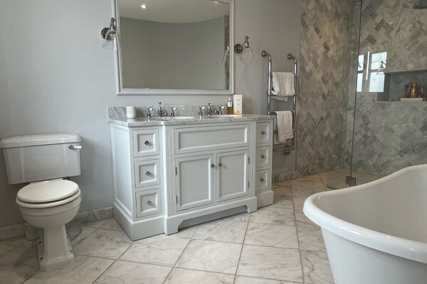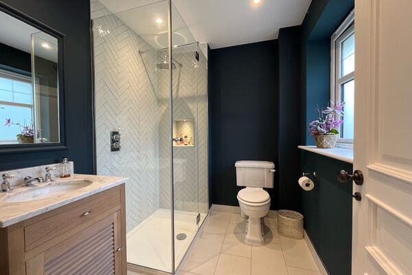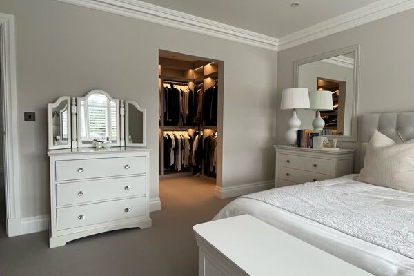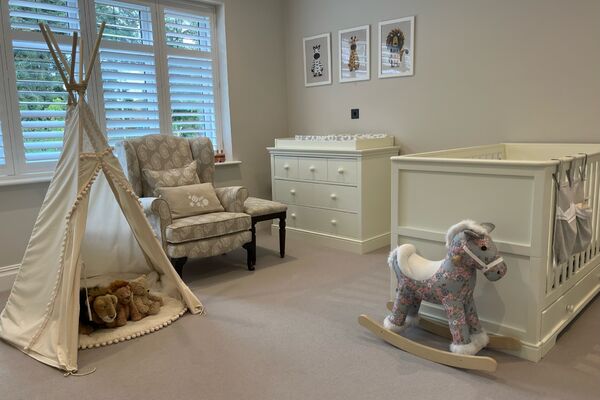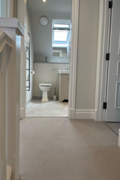 First Floor: Stairs leading to the first floor are laid with cormar carpet with tape edge binding. Landing, master bedroom with a highly specified dressing area, which is illuminated by LED lighting and a large luxurious ensuite with a double porter Burlington vanity unit, freestanding Waldorf bath and shower with Burlington fittings, and herringbone tiles. Large nursery with en suite, containing Neptune vanity unit and shower. All decorated to a high standard. Cornicing in the master and the landing. Cormar carpet throughout the upper floors.