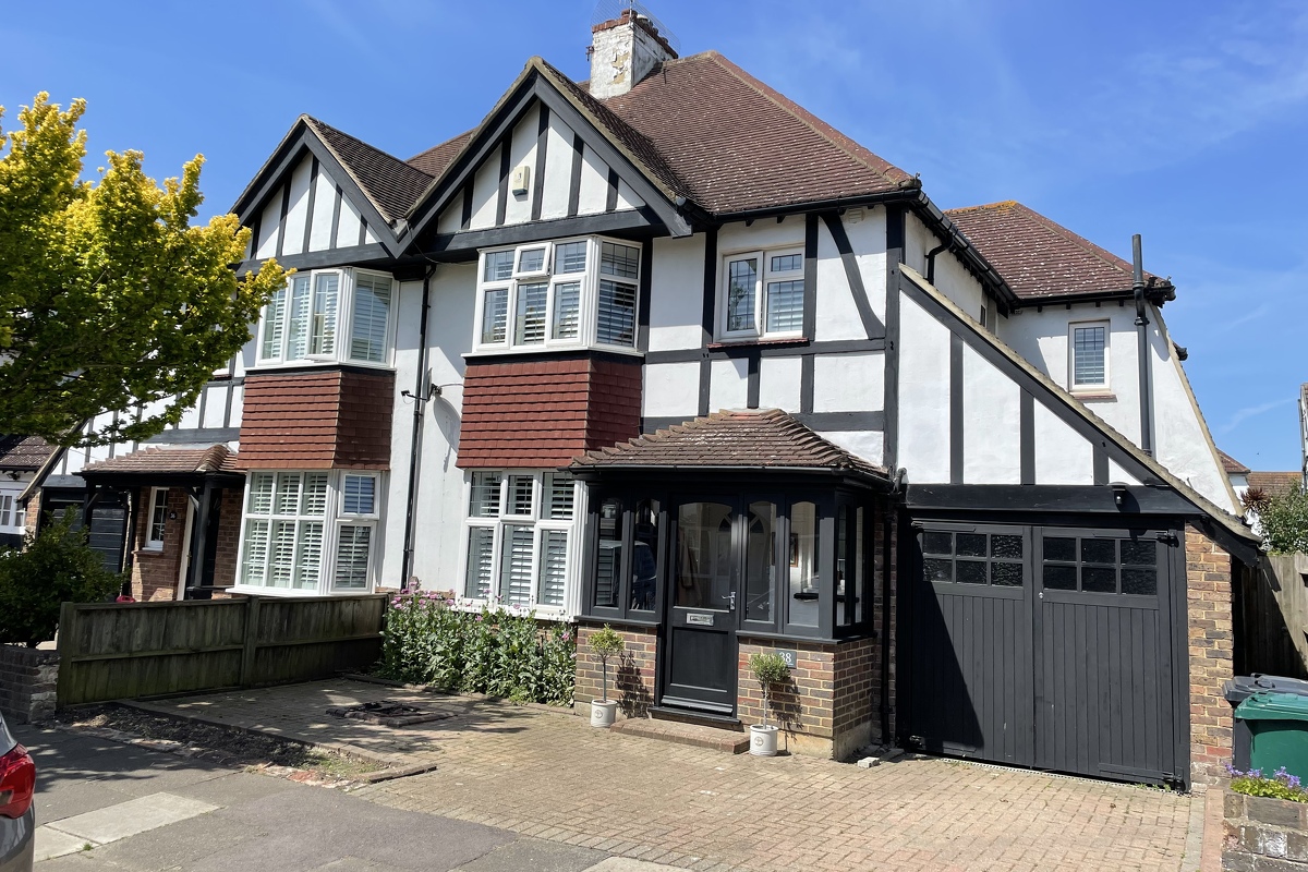 A 3 bedroom 1930s semi detached house with parking at the front.