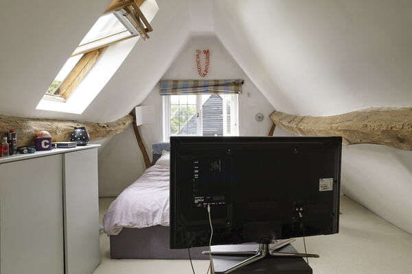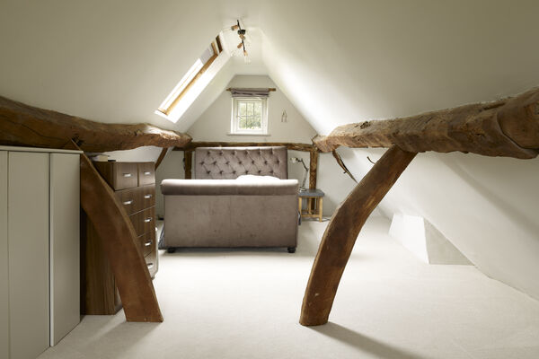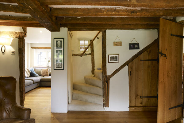 Many of the interior rooms reveal their original oak beam feature for a traditional English countryside farm experience.