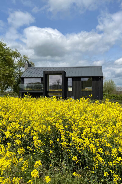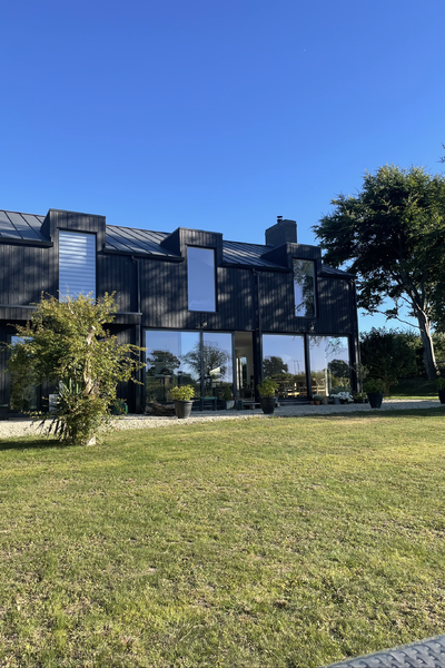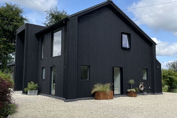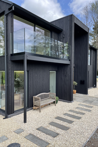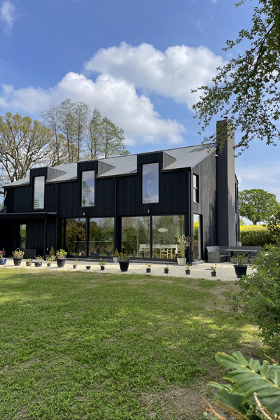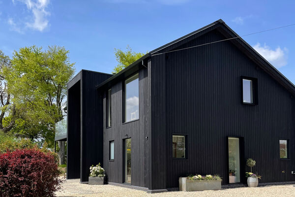 A new build Scandinavian style two story modern country, black clad Shou-Sugi-Ban (Charred Siberian larch) home.