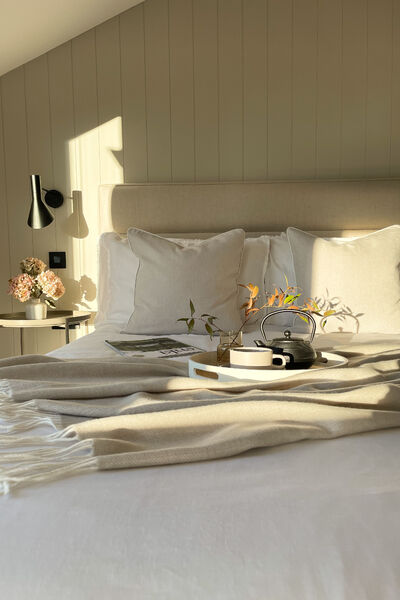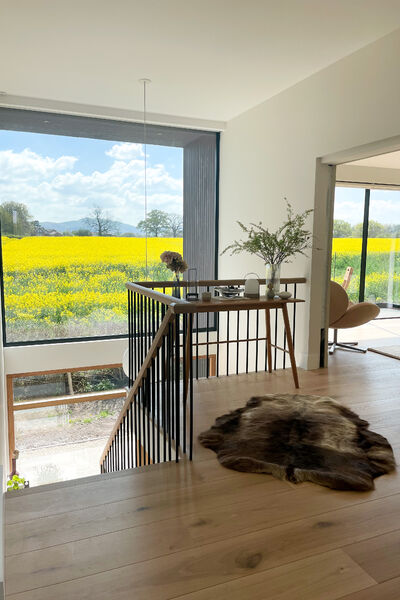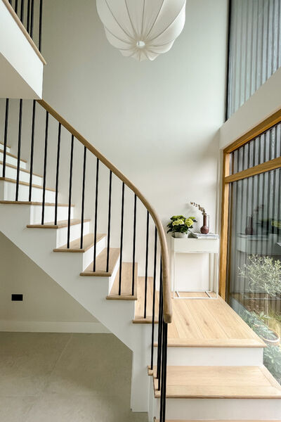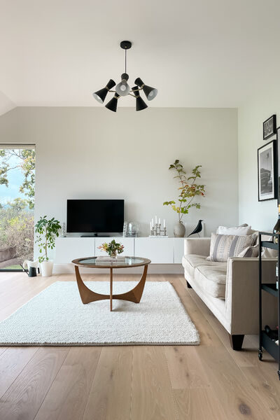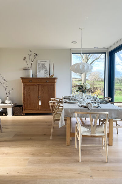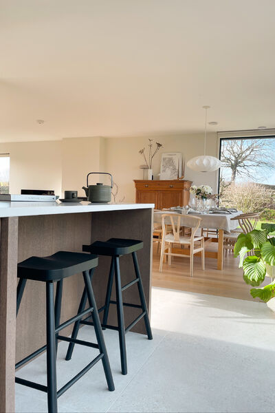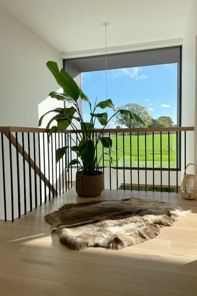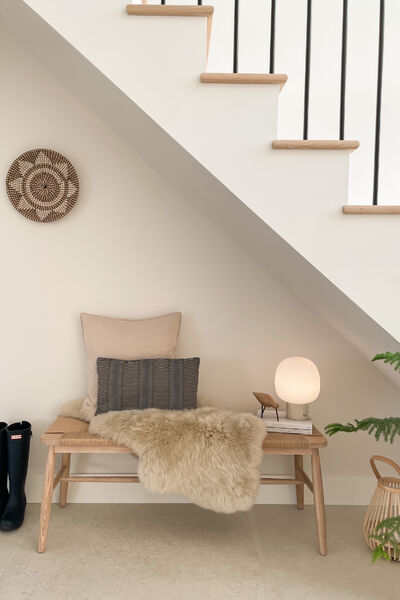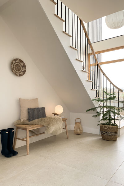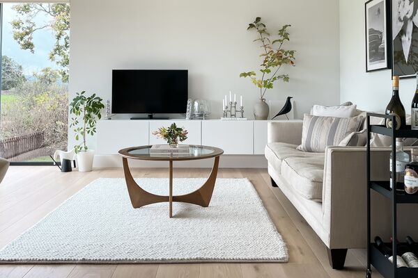This house is open plan through out and has a Scandinavian style interior with a neutral colour palette, including lots of textures and natural textiles.