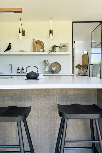 The house is light filled with large windows and sliding doors.