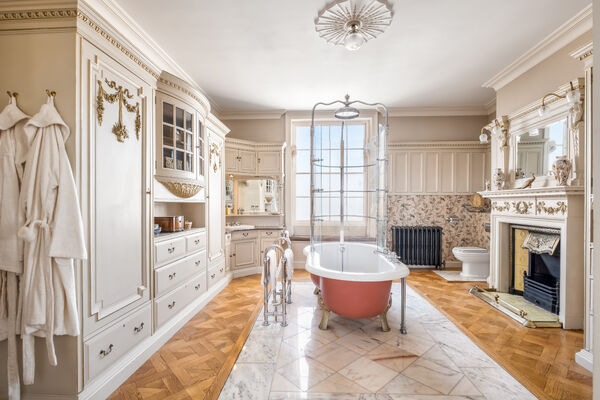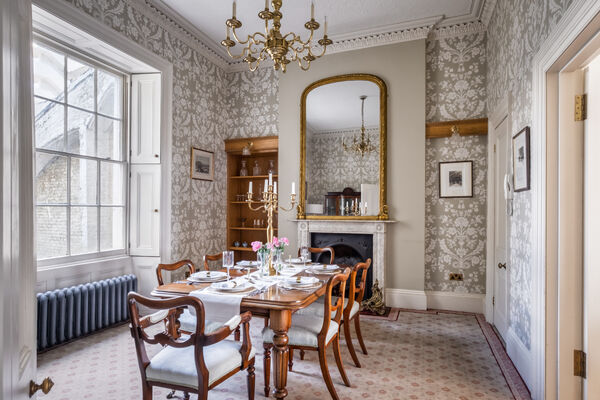 The entire town house is available for hire and retains original architectural details throughout. The property is arranged across four floors and includes three generous reception rooms grand hallways a formal dining room a separate kitchen a master bedroom with bathroom and a classic styled office space. The variety of rooms and levels provides multiple distinct backdrops and flexible filming options within one location.