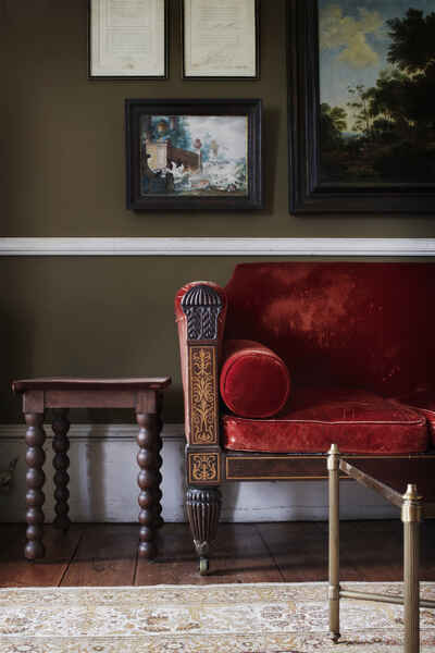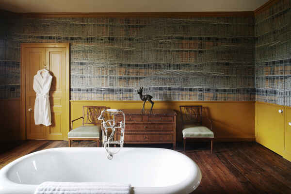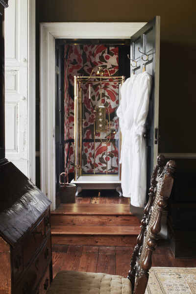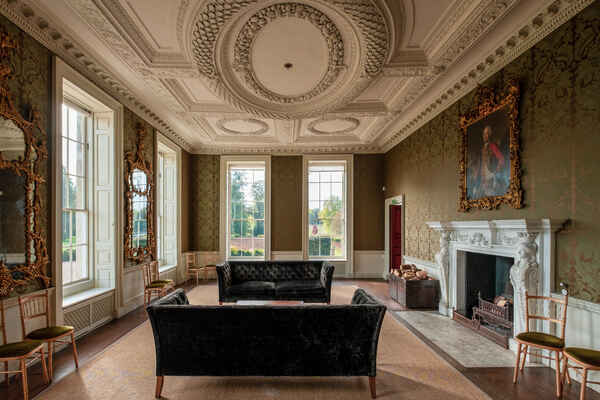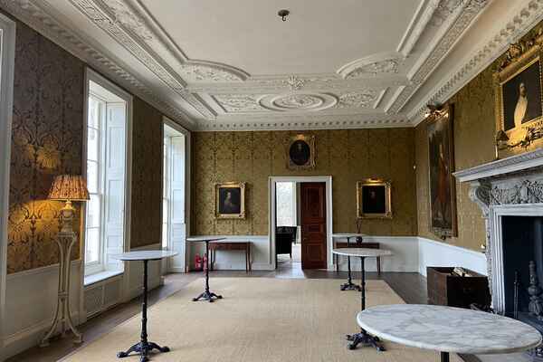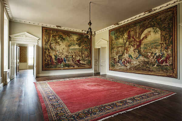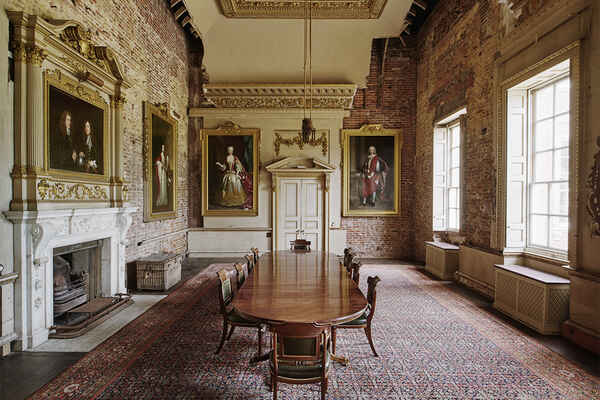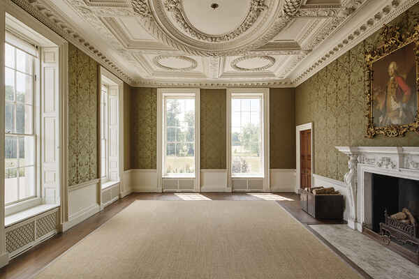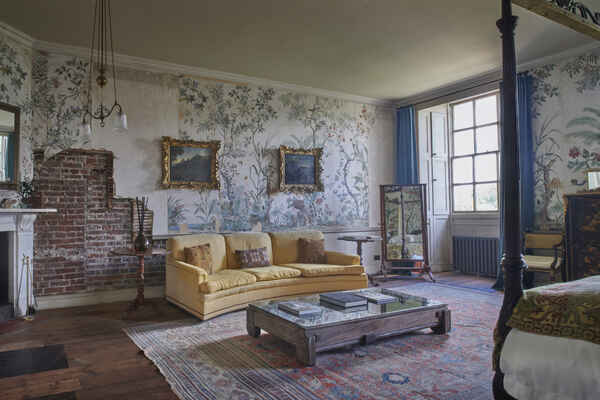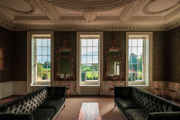 There a five principal rooms on the ground floor (Great Dining Room, Tapestry Room, North & South Drawing Rooms, Library), 6 bedrooms on the first floor and a speakeasy bar and nightclub in the basement. The 5,000 acre estate is complete with a stone terrace, shell grotto, castellated arch, lake, sunken garden and many fields.