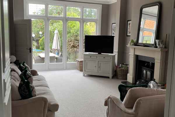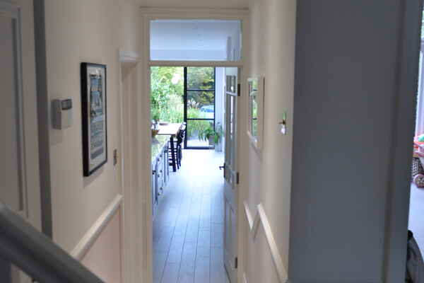 Enter to a spacious hallway with fireplace which flows through to two spacious living rooms with wood-burner fires.