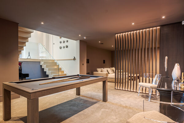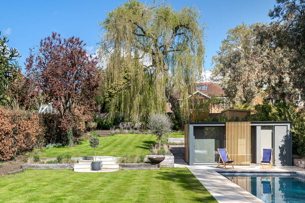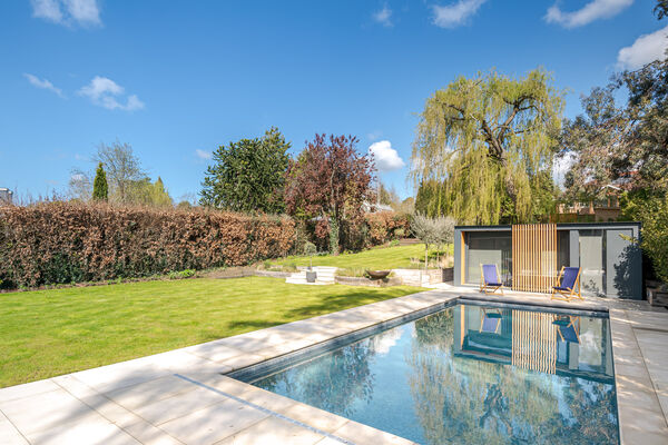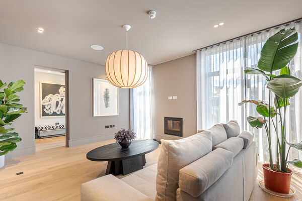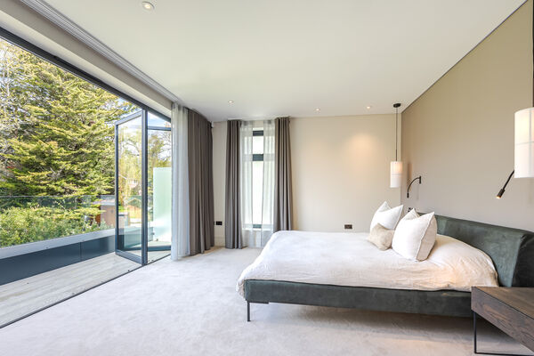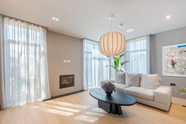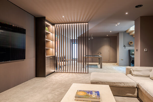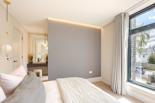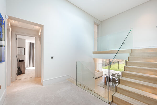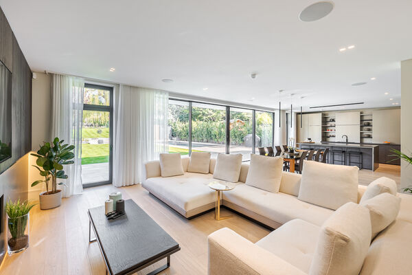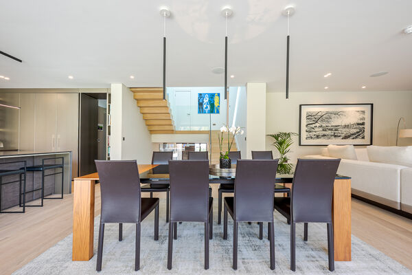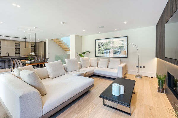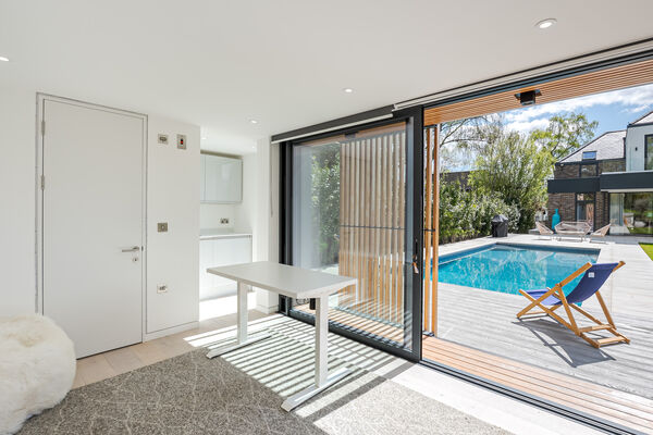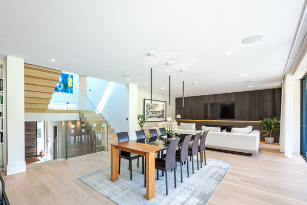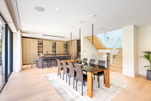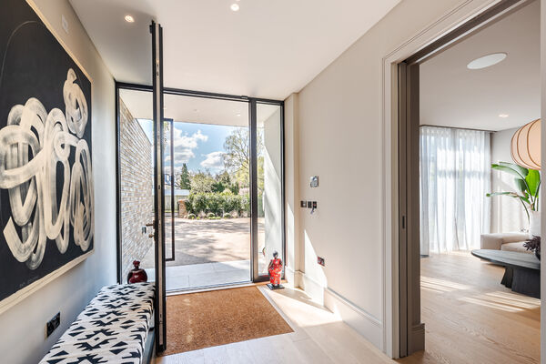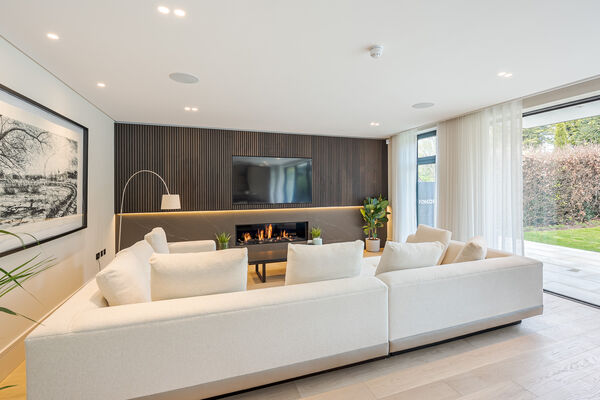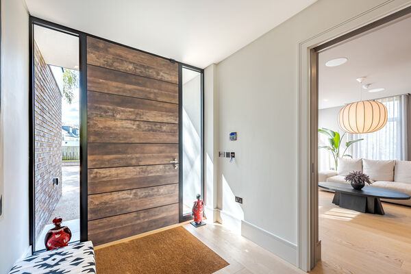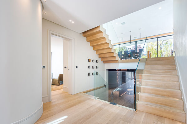 Internal LED lighting design and natural lighting. Clear visual follow through from front of house through to the back garden which creates sense of spaciousness. There is a beautiful Willow tree at the end of the garden.