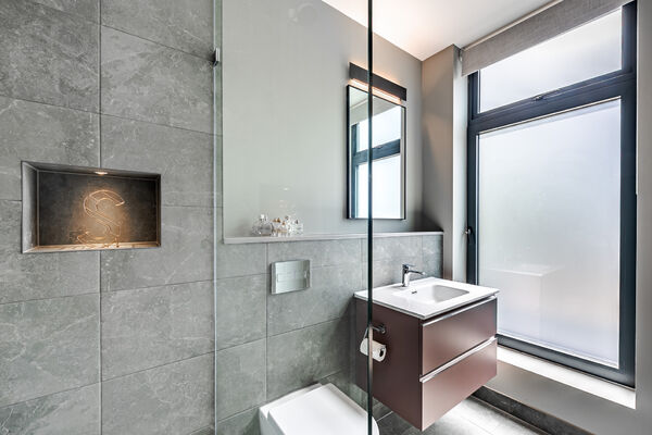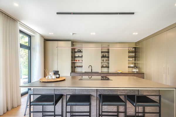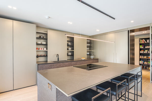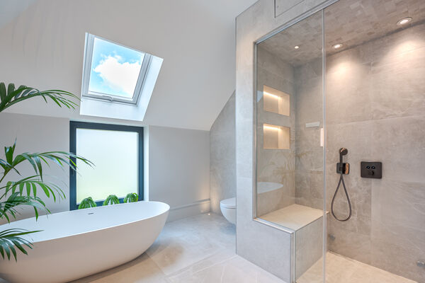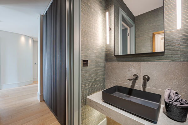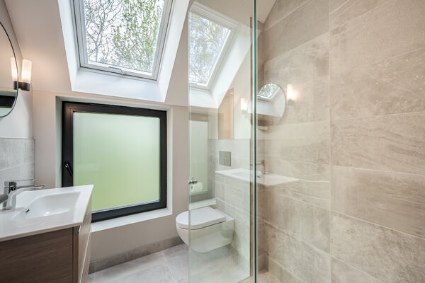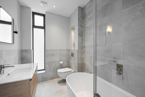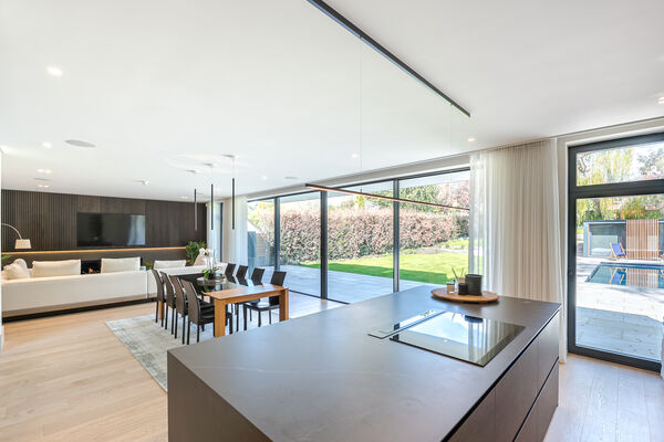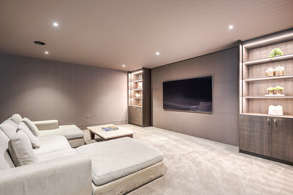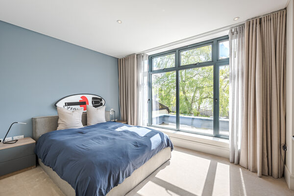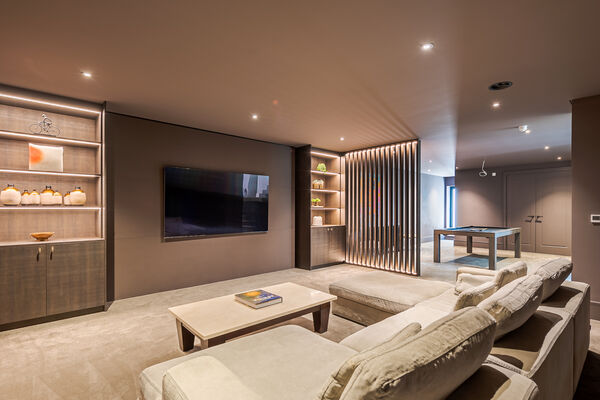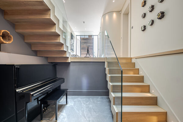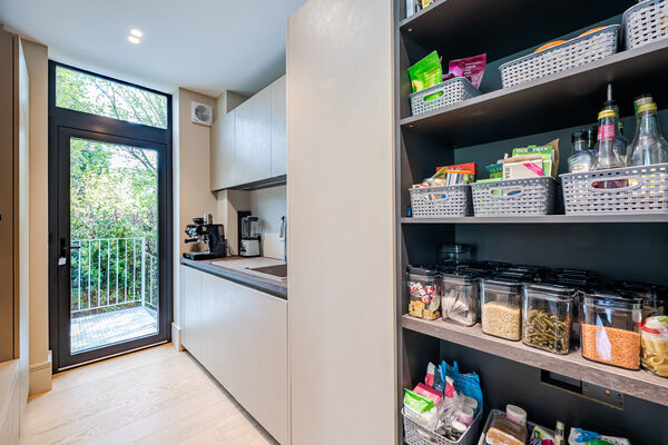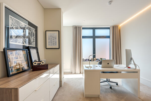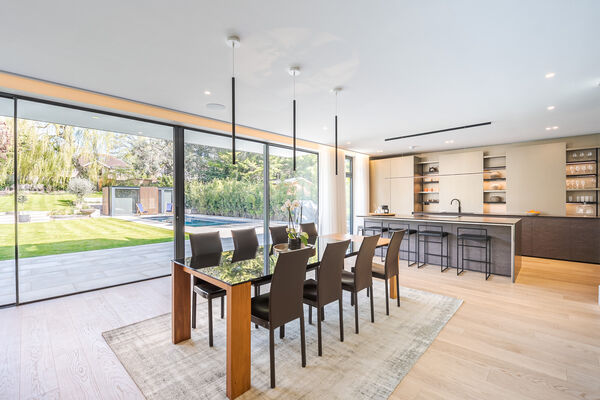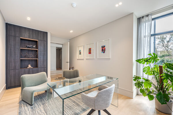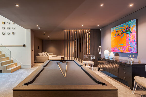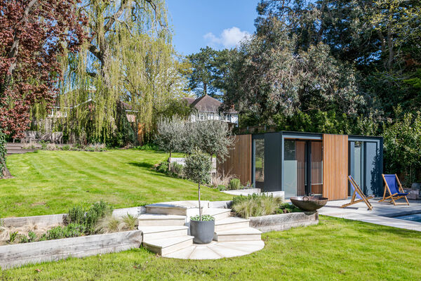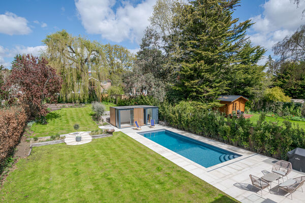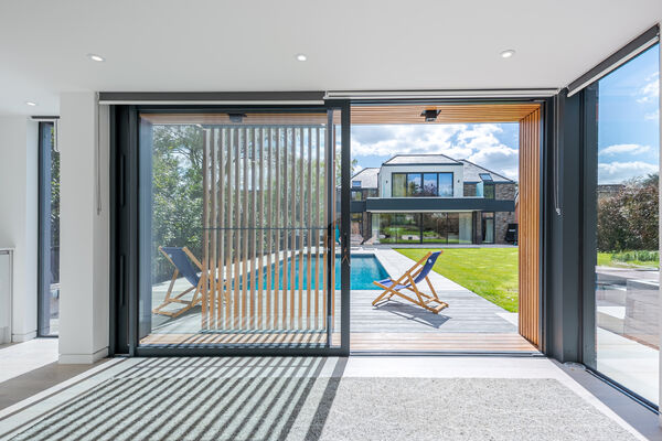 Internal LED lighting design and natural lighting. Clear visual follow through from front of house through to the back garden which creates sense of spaciousness. There is a beautiful Willow tree at the end of the garden.