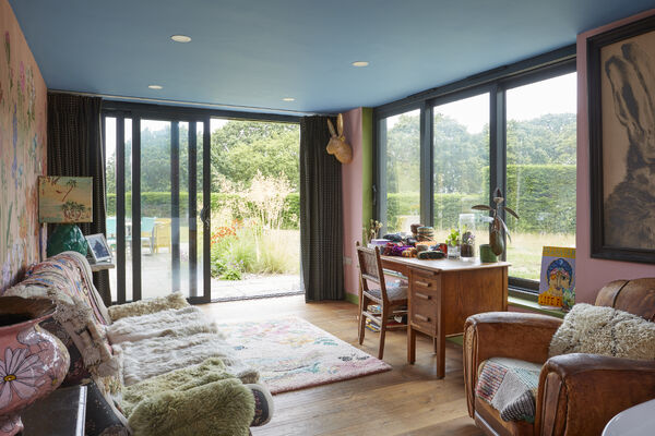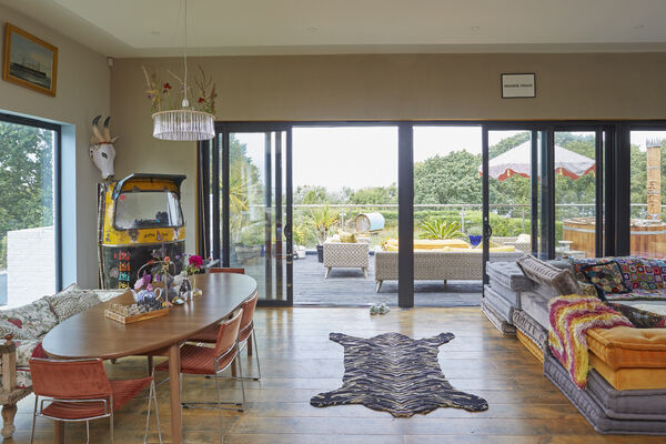 Facing northwest, the property offers optimal lighting conditions throughout the day. Inside, you'll find a tranquil yoga studio, an outdoor swimming pool, and a relaxing hot tub, providing versatile settings for your scenes. Outside, the garden hosts playful Pygmy goats and a skate ramp, while nearby, a charming wildflower meadow features two yurts, a gypsy caravan, and a vintage VW campervan. With a waterside deck, beach bar, and slipway, this location embraces the coastal lifestyle. For a serene yet dynamic backdrop to your production. There is an open plan kitchen/living/dining area, 5 x Bedrooms and 3 x Bathrooms.