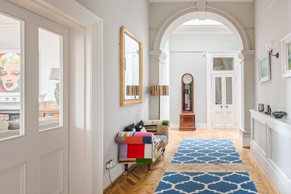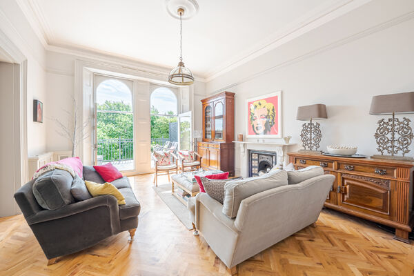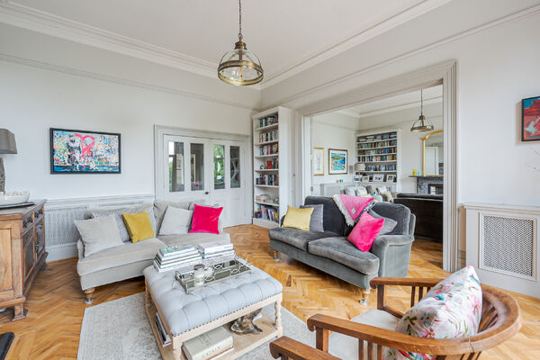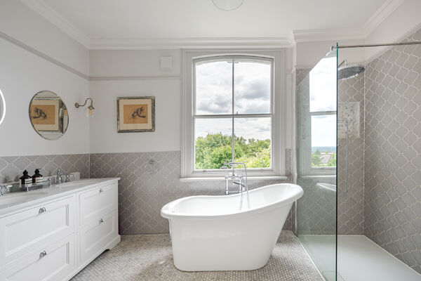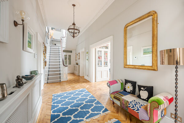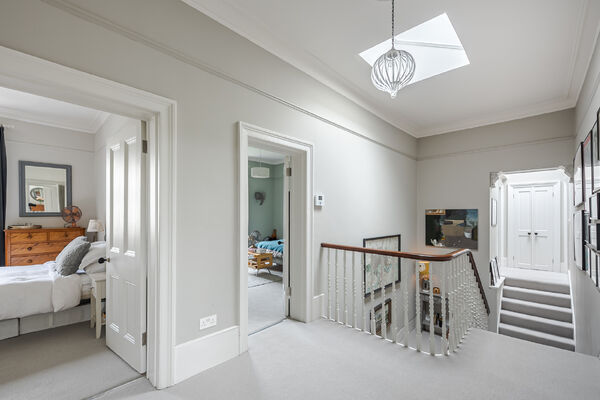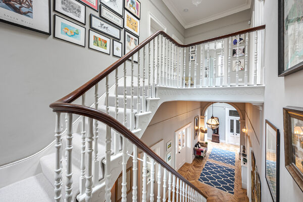 The first floor offers four bedrooms, including a master bedroom with an ensuite and dressing room, along with two shower rooms and one bathroom.