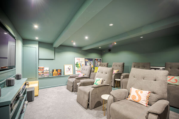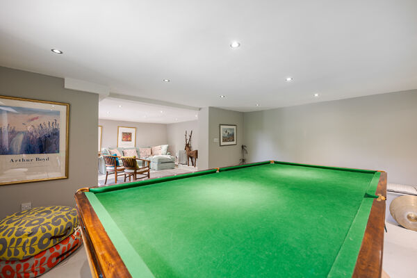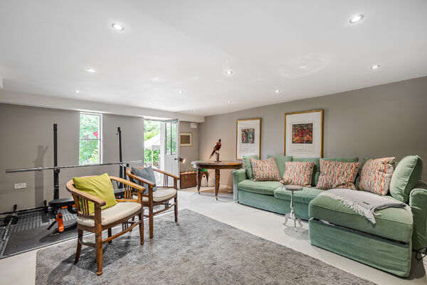 In the basement, filmmakers will find additional spaces for filming, including a sitting room, a snooker room, a kitchenette, a gym, and a cinema room.