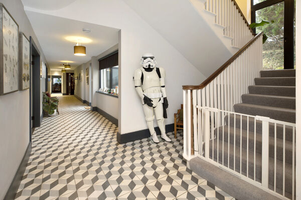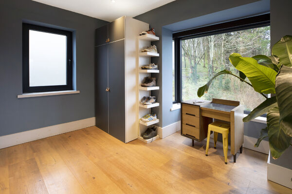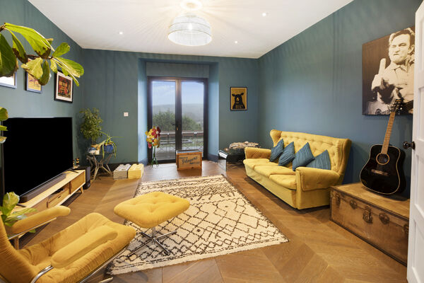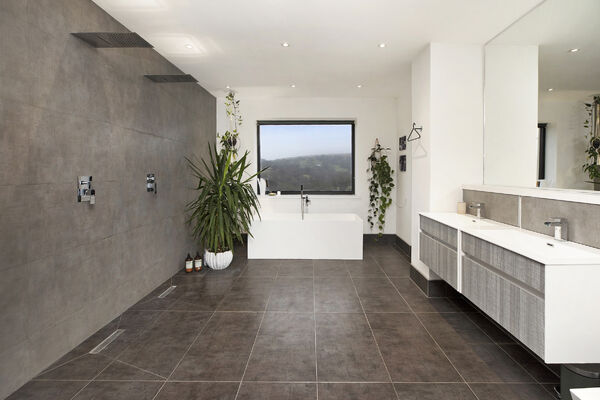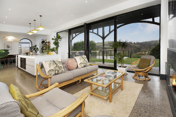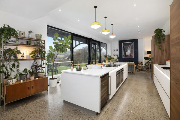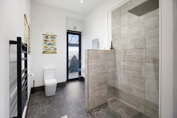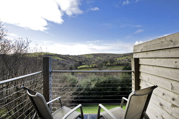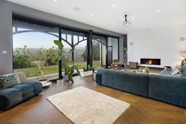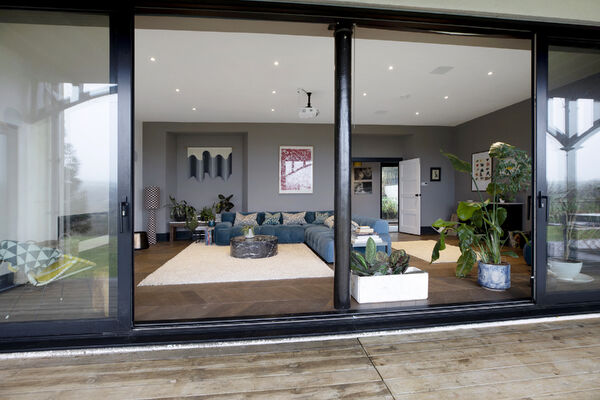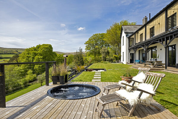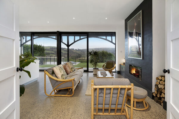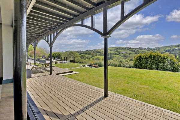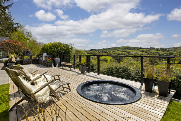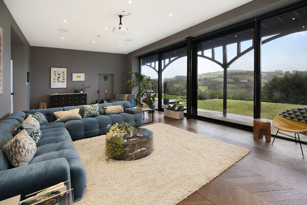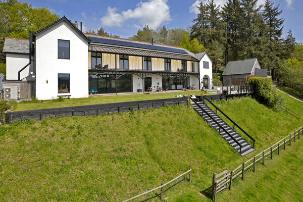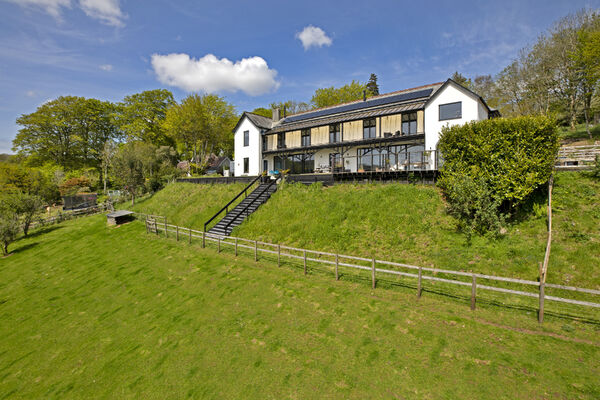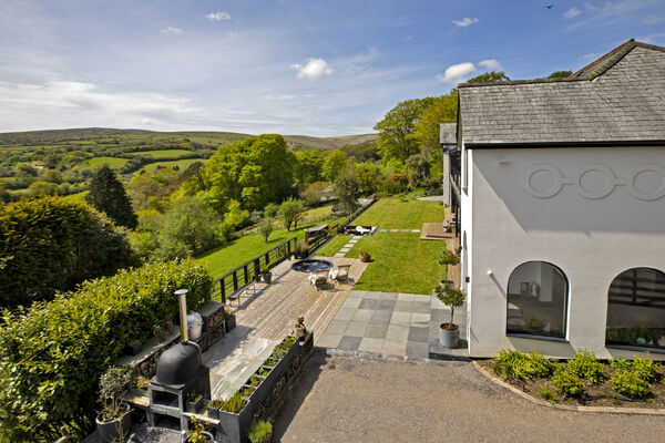 Fully glazed on one side with wide ranging views of Dartmoor from every room. A long terrace and balcony - one on each floor. The property features generously proportioned rooms (two with working fireplaces), a stylish lift, long corridors with double doors leading to every room (including bedrooms) which provides flexible shooting opportunities. Kitchen table and outdoor eating area seats 12. Outside there are gardens, an orchard and bluebell wood, as well as a built-in barbecue area, fire pit with seating on three sides and a sunken wood fired hot tub with wide ranging views.