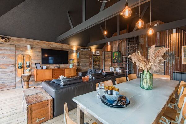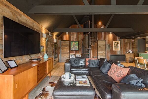 This funky location offers an open plan living and kitchen space which leads out into a garden via bifold doors.