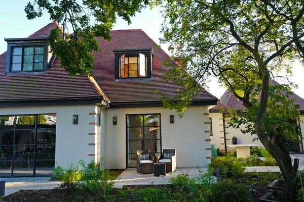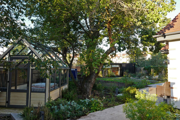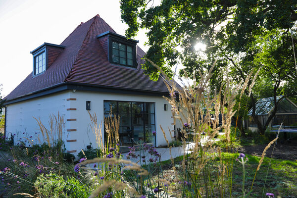 The rear garden features a pétanque court, table-tennis court, greenhouse, garden office and a wildflower meadow.