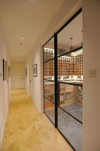 In the basement is a large cinema, 1500-bottle wine cellar, access to the climbing wall and two further bedrooms and a delightful bathroom with a walk-in shower.