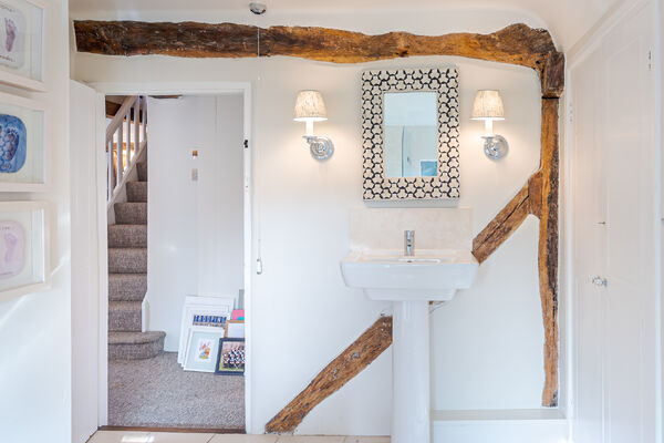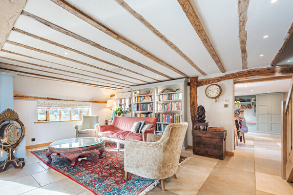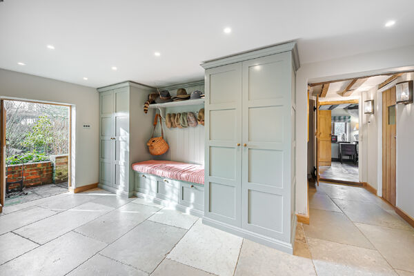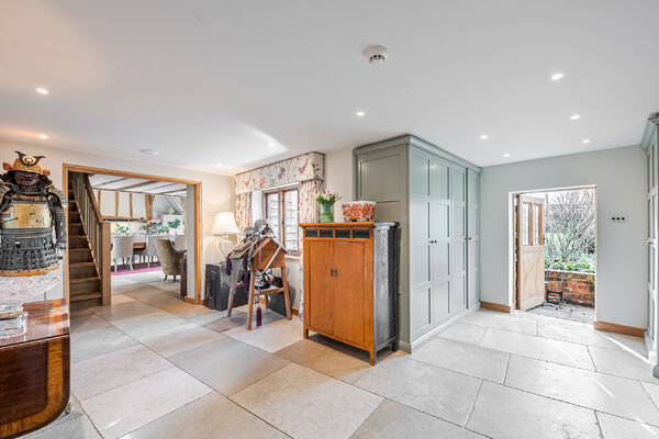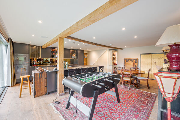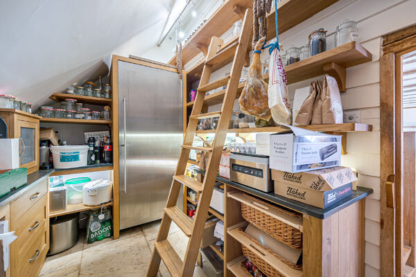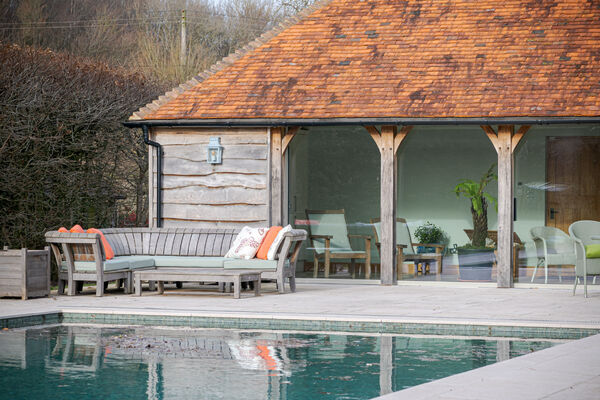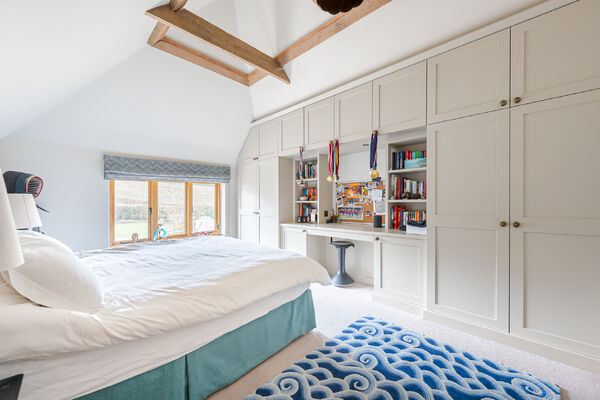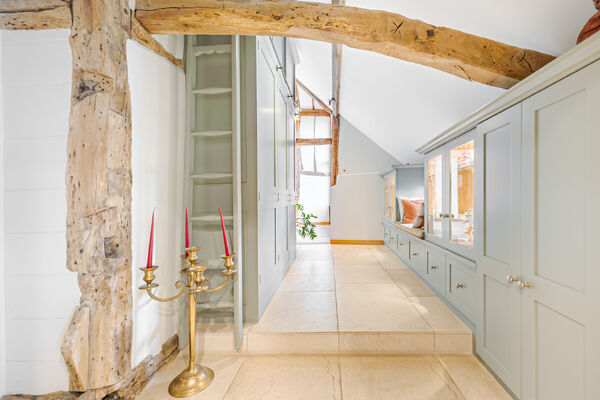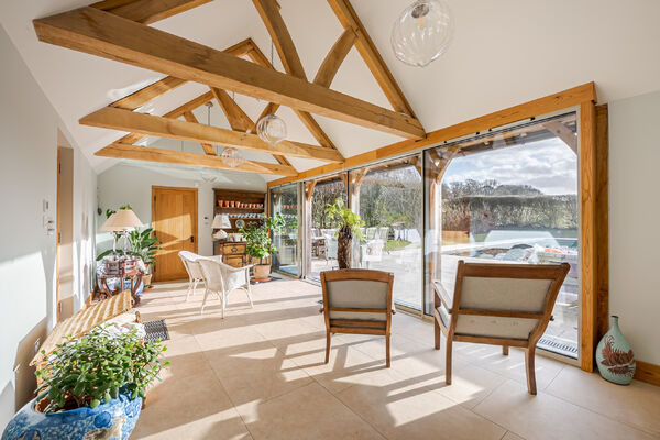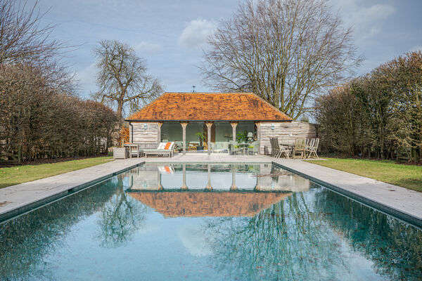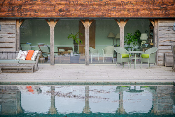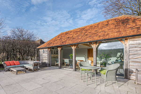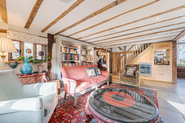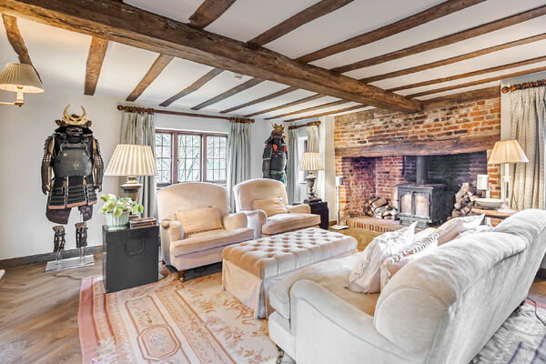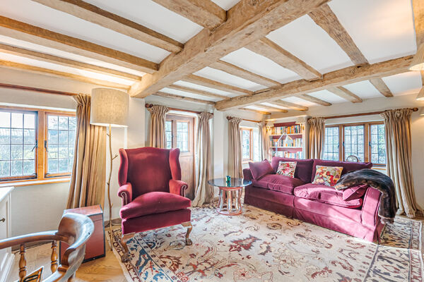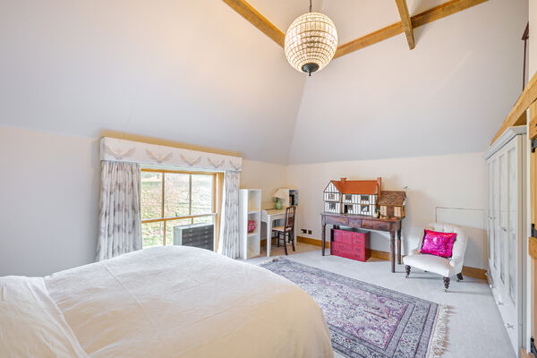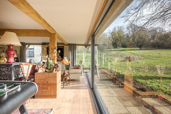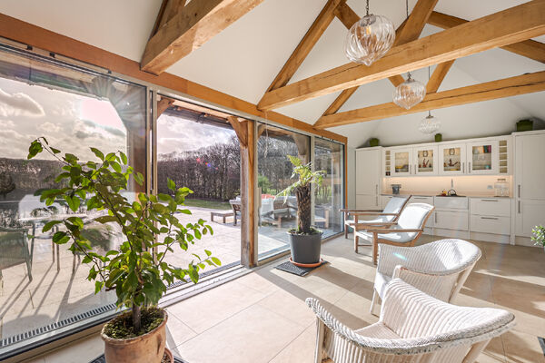 Located in the serene North Downs, this estate combines the charm of a traditional English cottage with the rustic appeal of a barn conversion. Enjoy sweeping valley views from the main house, featuring a cosy reception area with a rustic boot rack. Inside, a spacious kitchen seamlessly connects to a dining and sitting room, accented by oak beams and wooden floors. A mezzanine level adds a touch of elegance with a grand piano, while practical amenities like a separate pantry and boot room enhance functionality.