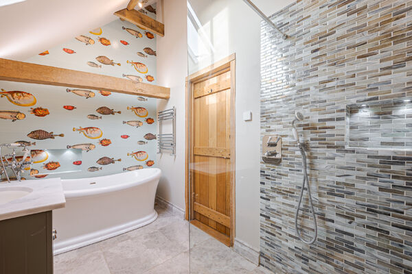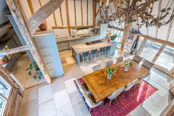 Adjacent to the main house, the converted barn offers a blend of heritage and modern living with a fully equipped kitchen/living/dining area. There are four additional bedrooms and two bathrooms.