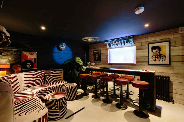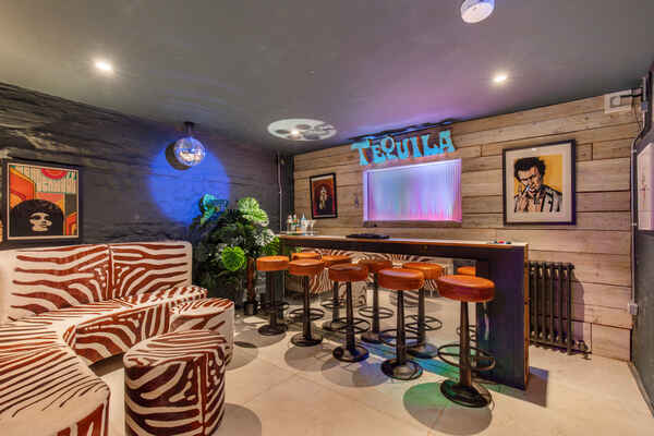 The bar is cool and stylish with bright and vibrant interior.
