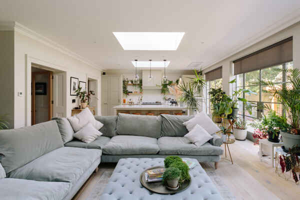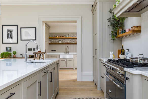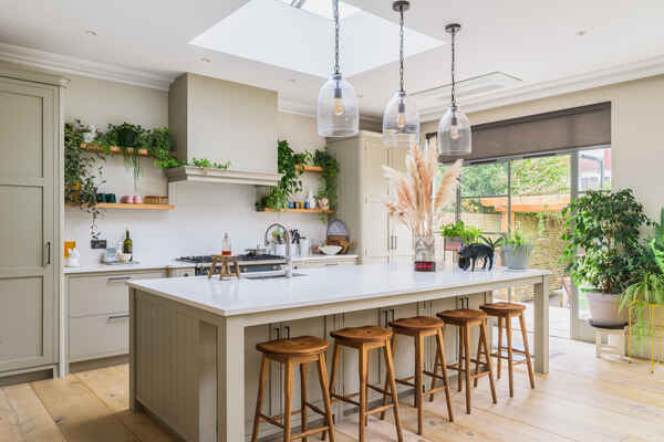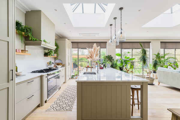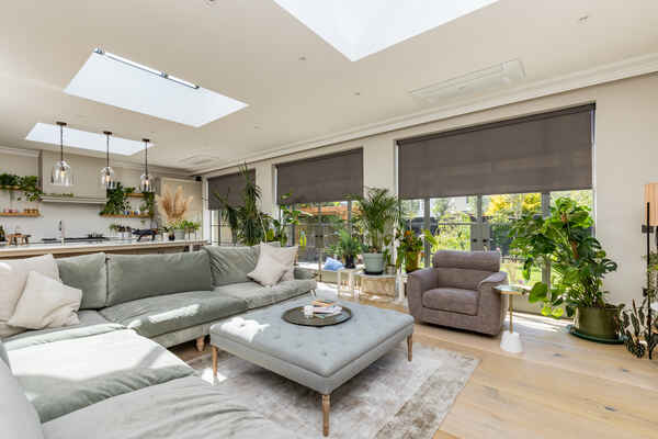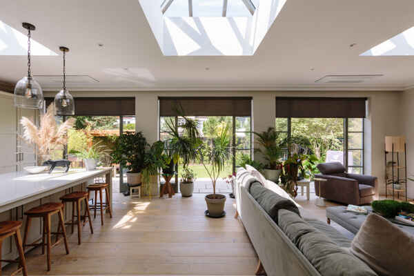 The kitchen also benefits from a comfortable lounging area which leads round into a large dining space.