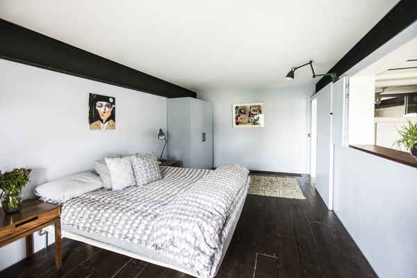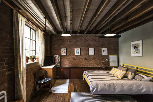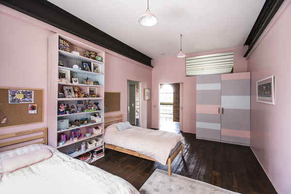 It is possible to shoot down from a height at both upper levels, thanks to open walkways and a large "wall window" set within the second-floor bedroom.