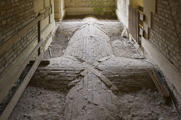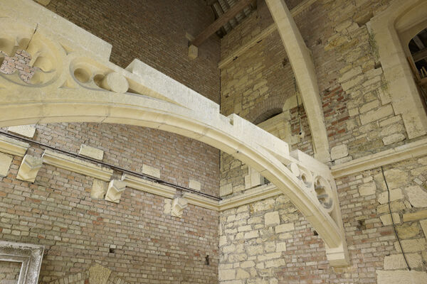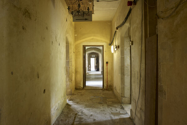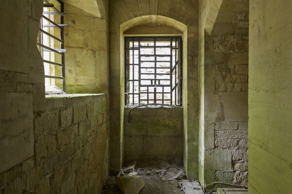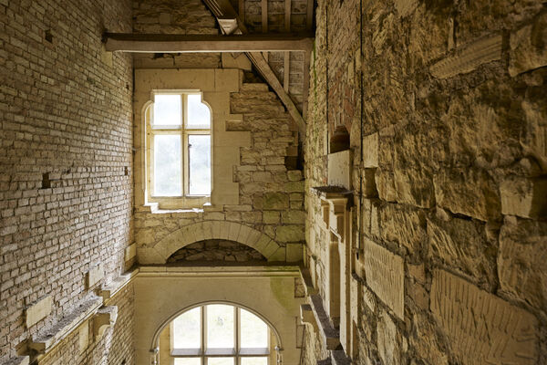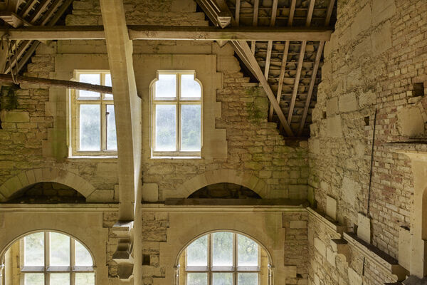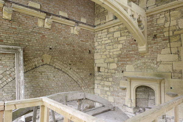 The building on this location started about 1857, but stopped in the mid-1860s so floors and ceilings are missing, walls not plastered and windows unglazed.