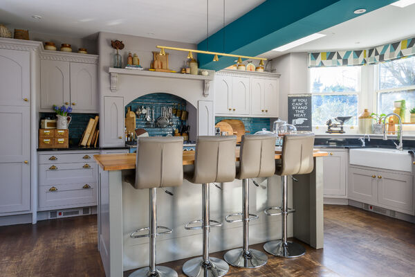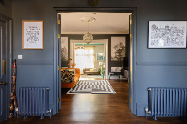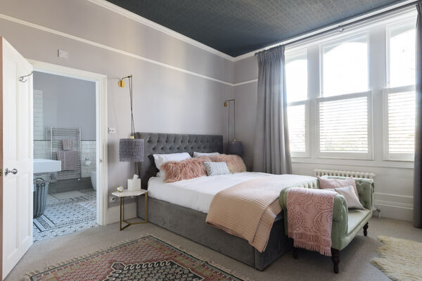 Stunning double fronted Victorian home with a contemporary cedar clad pool house and outdoor swimming pool at the bottom of the garden.