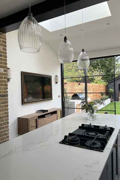 - High-end luxury kitchen extension by Brookmans of Smallbone; gas hob, double ovens, integrated appliances - Ground floor toilet