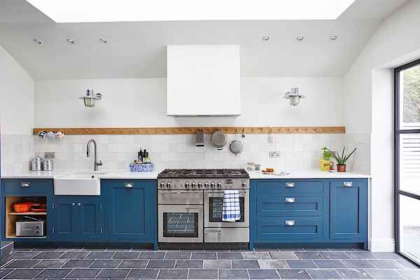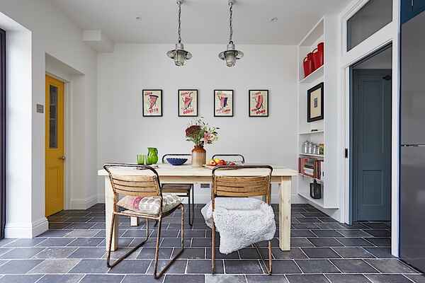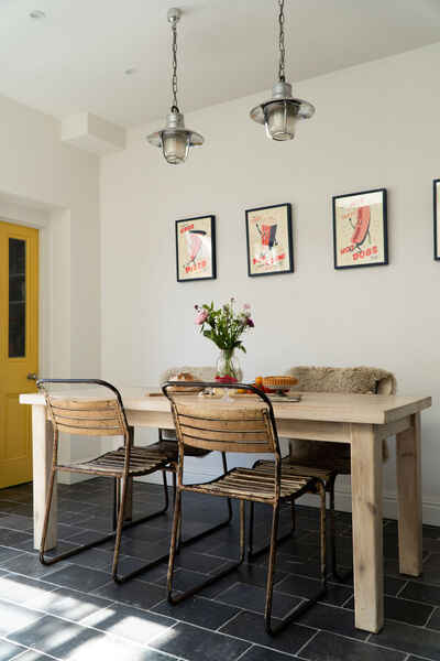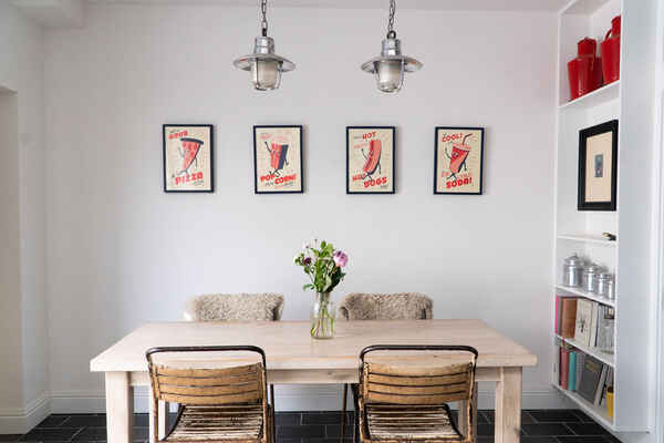 Ground floor - large kitchen diner with roof light and crittal style doors onto walled garden, through lounge, cloakroom.