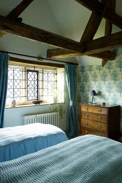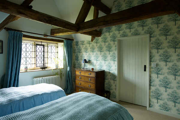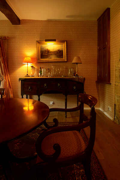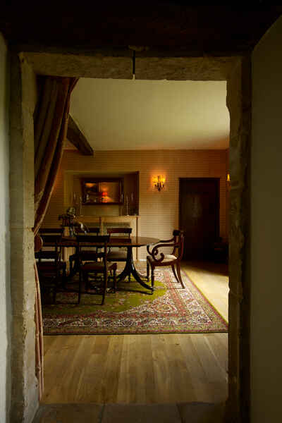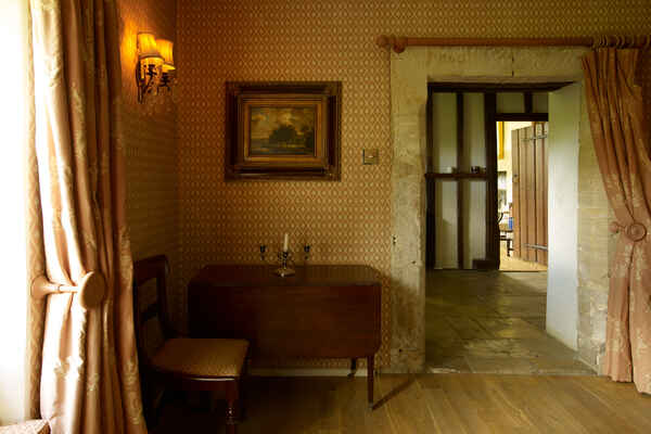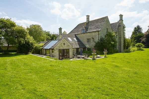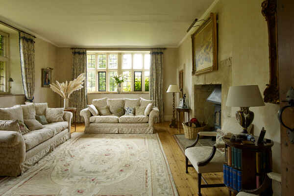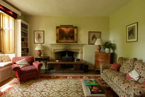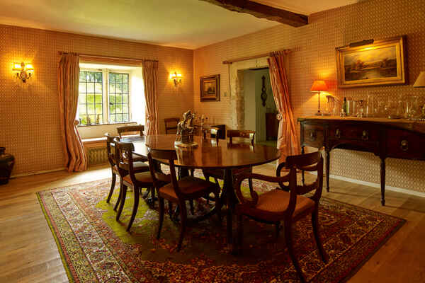 This manor occupies numerous farm buildings in a large site at the north end of the upper part of Withington Village. On the north-west of the house is a square, cross-gabled dovecot, probably of the 17th or early 18th century. The estate has excellent equestrian facilities and hosts the annual horse trials. There are rolling hills, sheep, barns (some old with fabulous beams, scruffy doors), vast hay storage, wood chip boiler, solar panels, stables – American barn style and courtyard style, plus numerous cottages, many with roses round the doors! Ancient woodland, a 30 year old plantation with 40,000 trees and wonderful rides dividing the sections, pond, water meadows, streams, hens and dogs!