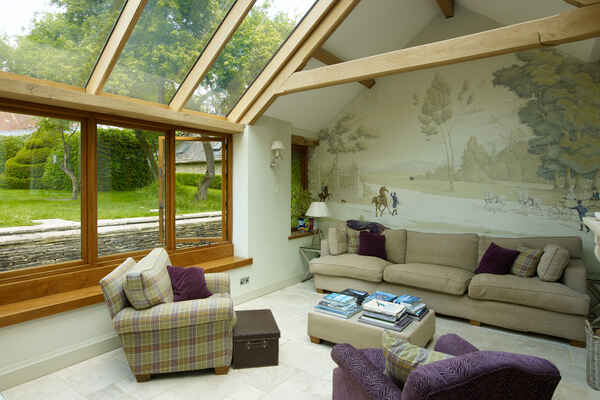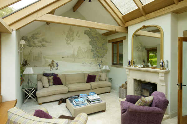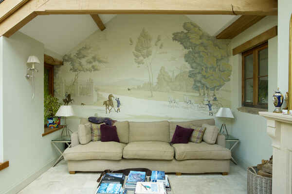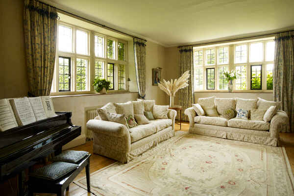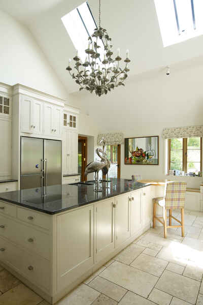 Large living areas with exposed wooden beams, stunning graphic top high ceiling kitchen and 5 large bedrooms